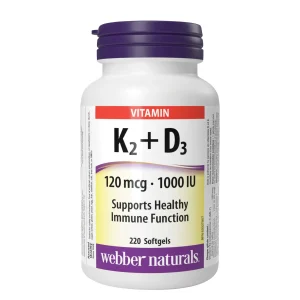 Webber Naturals 维生素 K2+D3 120 mg/1000 IU – 220 粒软胶囊