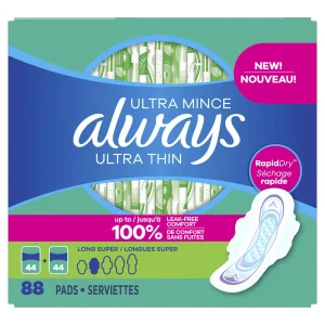Always 超薄加长超级卫生巾,无香型,带护翼,88 片