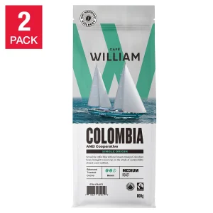 Café William 有机中度烘焙哥伦比亚咖啡豆,2 x 800 克