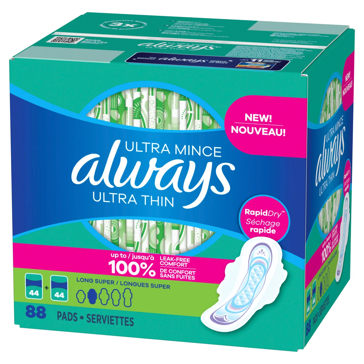 尝试全新设计的Always Ultra 卫生巾采用三重防护系统,带来高达 100% 的防漏舒适体验。它可在几秒钟内吸走溢漏,锁住漏液,提供持久保护,并消除异味,让您一整天保持清爽洁净。无论您的日常生活如何,Always Ultra Thin 卫生巾都能为您提供强效的经期保护。