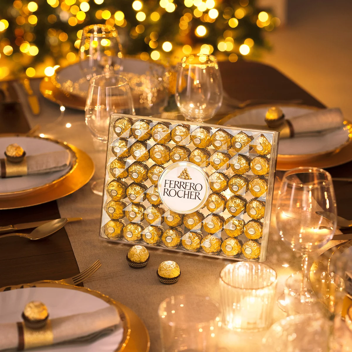 48 颗费列罗巧克力果仁糖盛放在令人印象深刻的透明礼盒中,非常适合与您所爱的人分享,让任何时刻都变得特别。