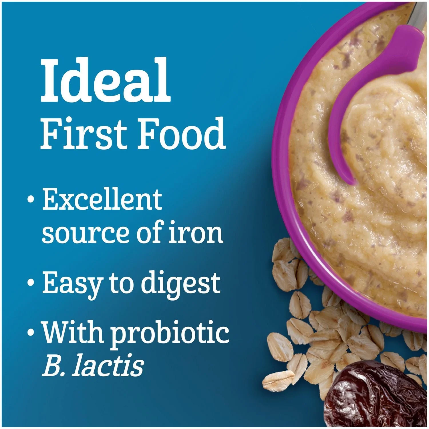 嘉宝® 2段燕麦西梅婴儿米粉(227克)富含6个月及以上宝宝所需的重要营养素。每份都含有促进认知发育的铁、强健骨骼和牙齿的钙以及有助于维持肠道菌群健康的益生菌,让您安心呵护宝宝健康成长。这款米粉采用真正的西梅制成,是为宝宝引入新口味和新口感的理想之选。由于米粉本身已含有牛奶,您只需加水即可轻松冲泡,方便快捷,营养美味。本产品不添加糖、盐、防腐剂、人工色素和香精。搭配嘉宝® 果蔬泥,营养更丰富。随着宝宝的成长,嘉宝® 下一阶段米粉将帮助他们体验更多新口味和新口感!另有米胡萝卜南瓜味、米香蕉味、小麦香蕉草莓味、混合谷物燕麦水果味和燕麦西梅味可供选择。 每28克含10亿乳双歧杆菌,所有12个月以下婴儿的谷物类食品均不应含盐