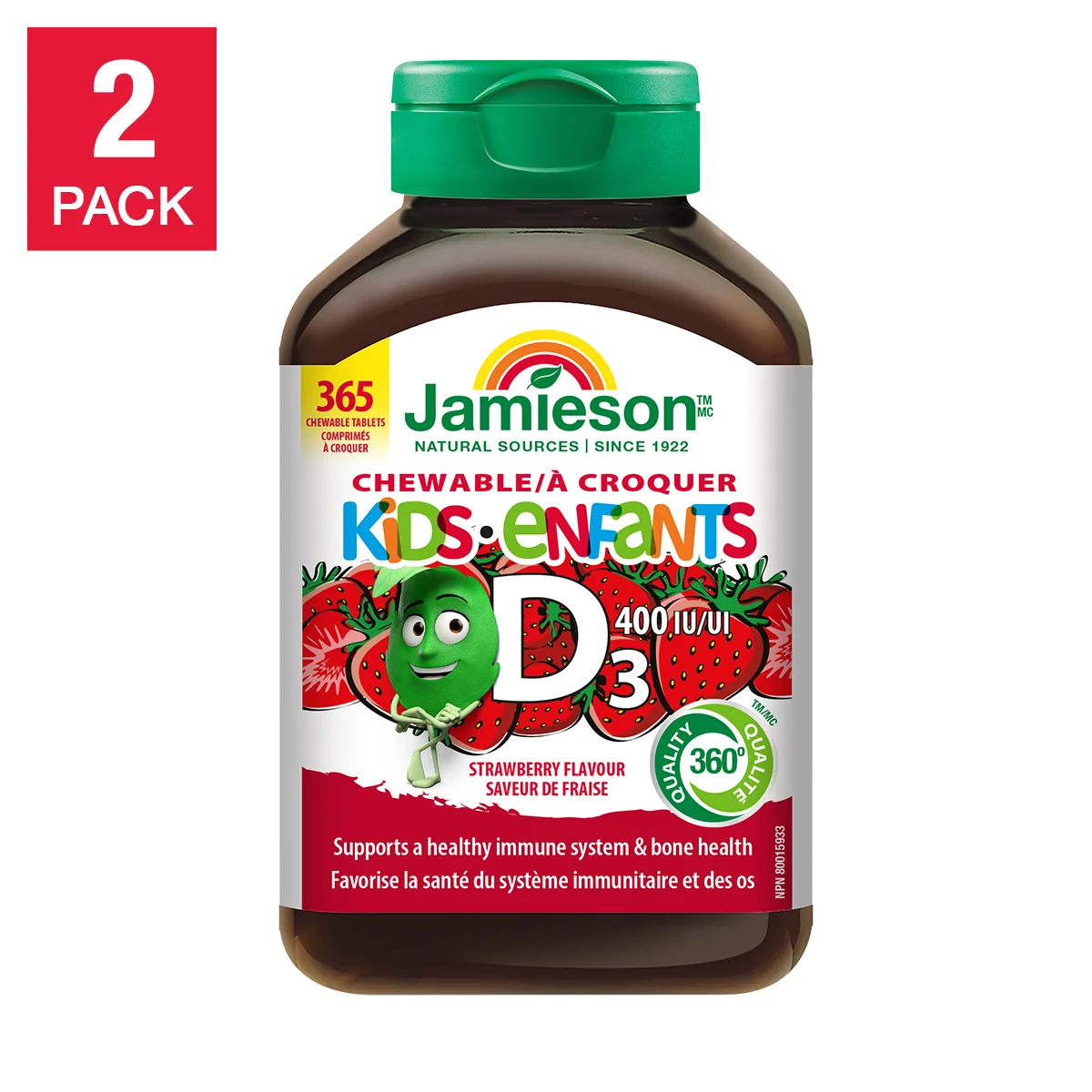 儿童咀嚼维生素D3 400 IU是一款美味易咀嚼的儿童配方片剂。每日服用1至2片,有助于促进儿童骨骼和牙齿的健康发育。