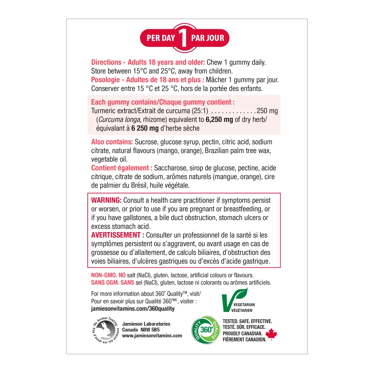 - 姜黄(25:1)提取物 250 毫克