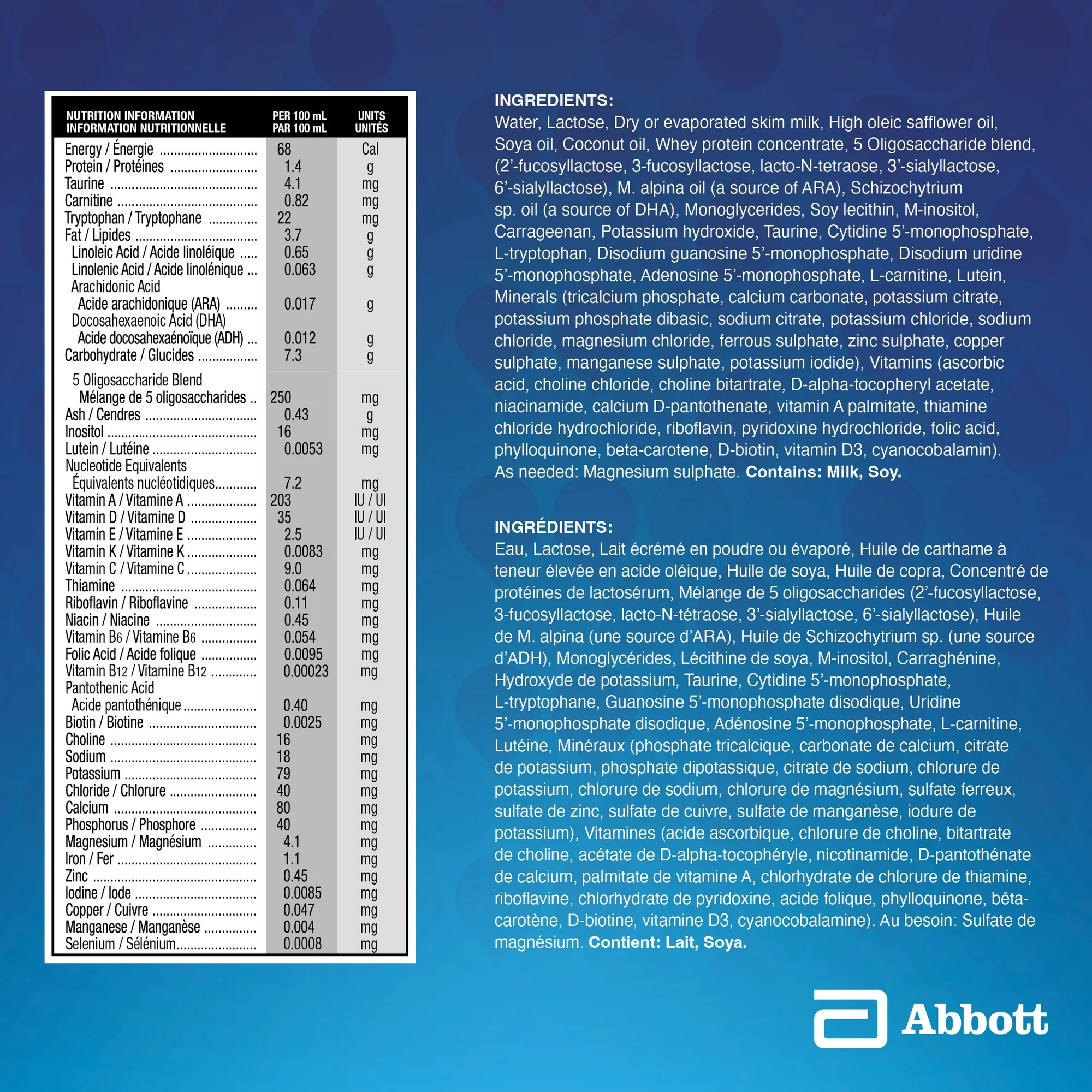 • Similac 的独家混合物;Similac Pro-Advance 含有 2′-FL、DHA、叶黄素和维生素 E 的独家混合物